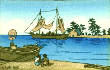 | A brief discussion of Hasui's hagakiban prints and examples can be seen on the Hanga Gallery site, here; this print is among them. | |