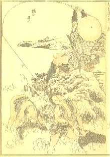 | Three people fishing, including a woman in foreground, with a rod, a sieve-like basket, and a scoop-net on a bamboo pole. A soft print with good clear detail in the woven basket and net. | |